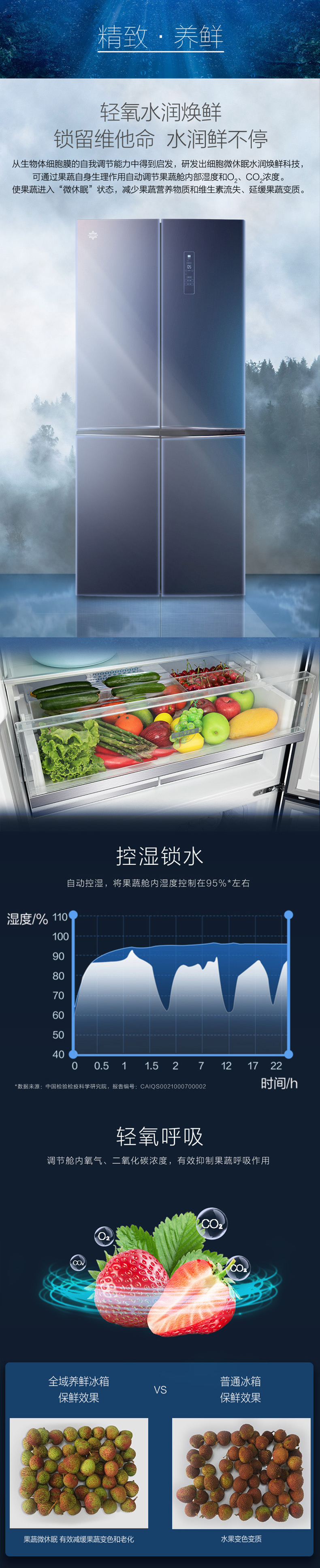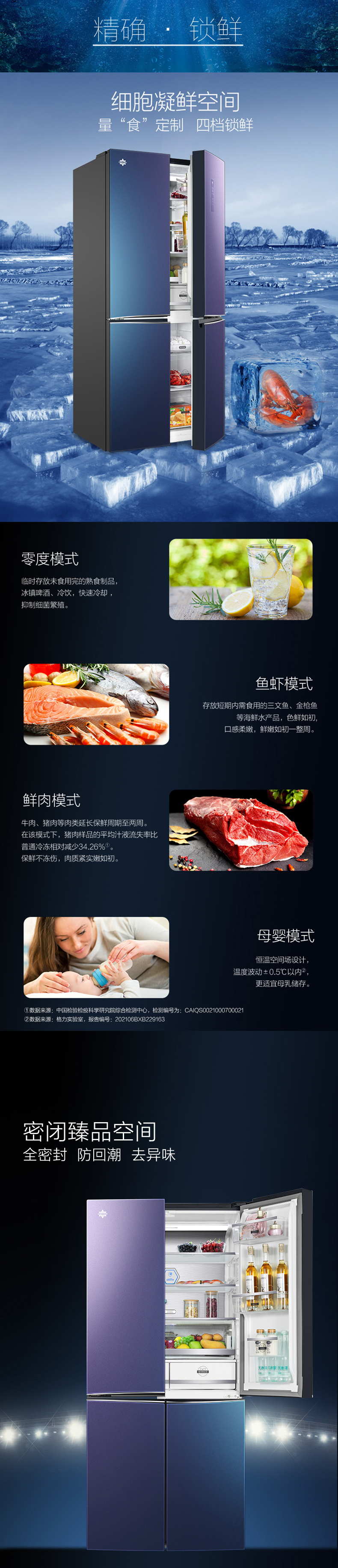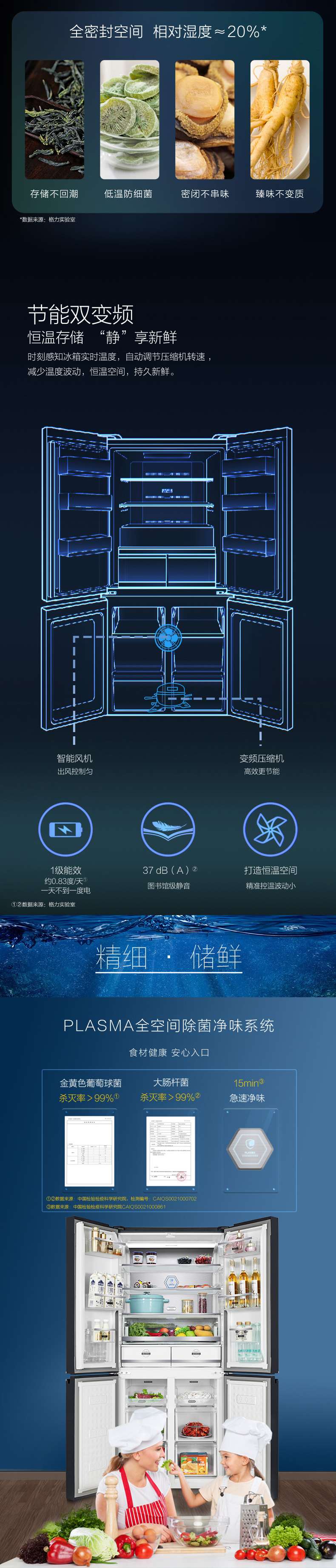 針對每種食材進行精細化分區(qū),定制專屬保鮮艙,涵蓋肉類保鮮、果蔬保鮮、母乳儲存、干貨儲存以及除菌凈味五個維度,確保每一件食材的新鮮儲存