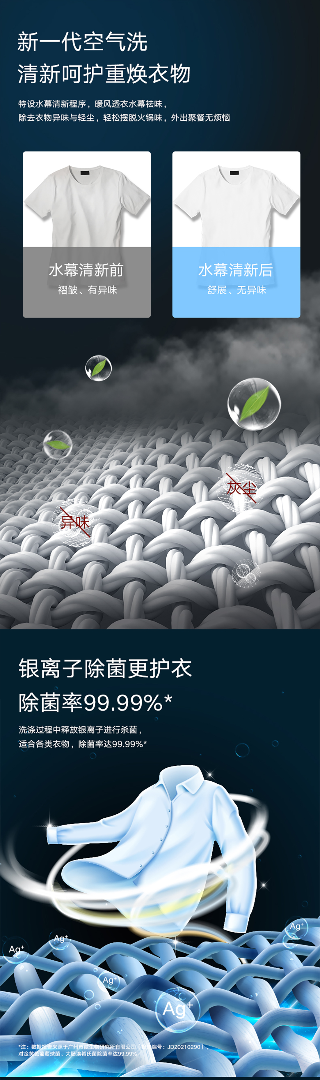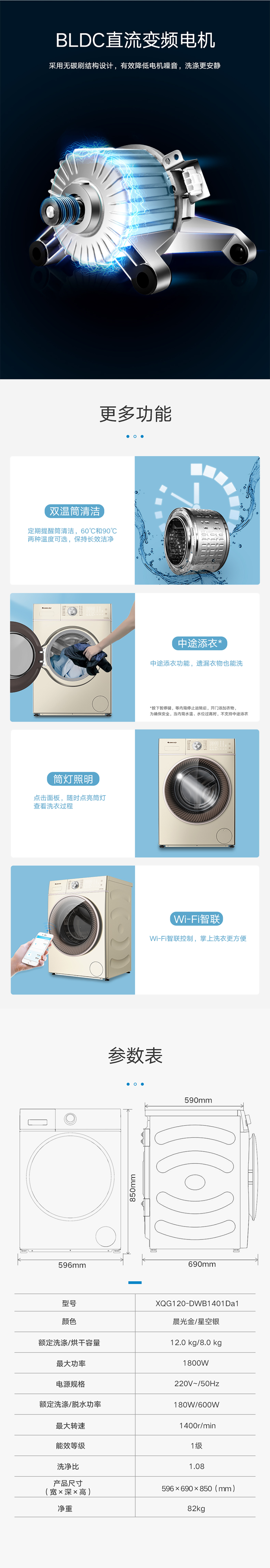極凈去污,一次洗凈多類污漬;大容量,全家人衣物無需分類分開洗;洗烘一體,即洗即烘即穿.