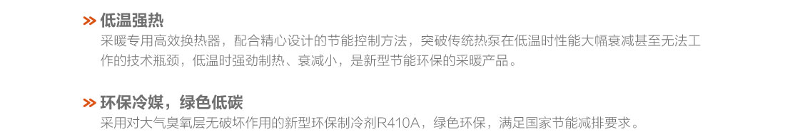 采用直流變頻技術,制熱量范圍8.5~16kW,穩(wěn)定運行環(huán)境溫度范圍-20℃~28℃、出水溫度范圍25~55℃,具有低溫強熱、節(jié)能高效、穩(wěn)定可靠等特點,適用于集中供暖覆蓋不足的農(nóng)村及城郊地區(qū)以及城市獨立供暖的公寓、復式樓、別墅、單元寫字樓、餐廳、商店、娛樂場所等空間.
